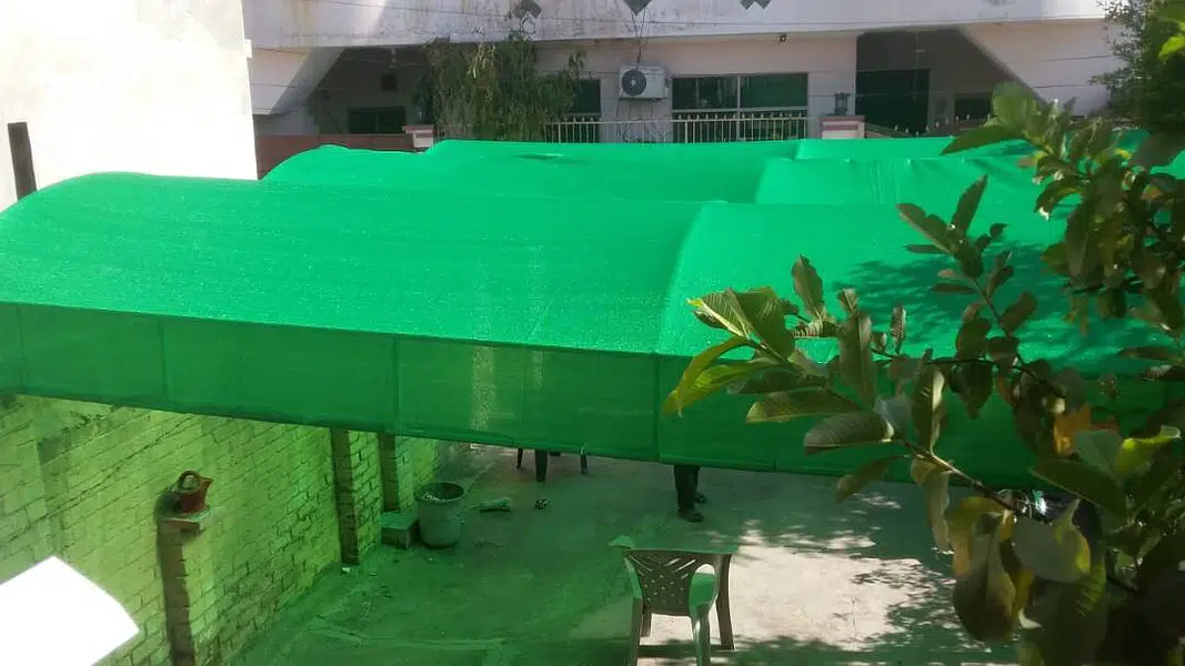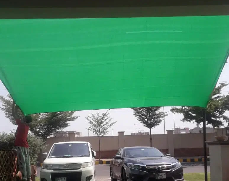 Green Sun Shades, commonly referred to as Shade Nets or Tarpaal (in local terminology), are high-density polyethylene (HDPE) knitted fabrics designed to provide relief from intense sunlight and heat. These are essential for maintaining cooler temperatures in outdoor areas, protecting plants, and creating private spaces.