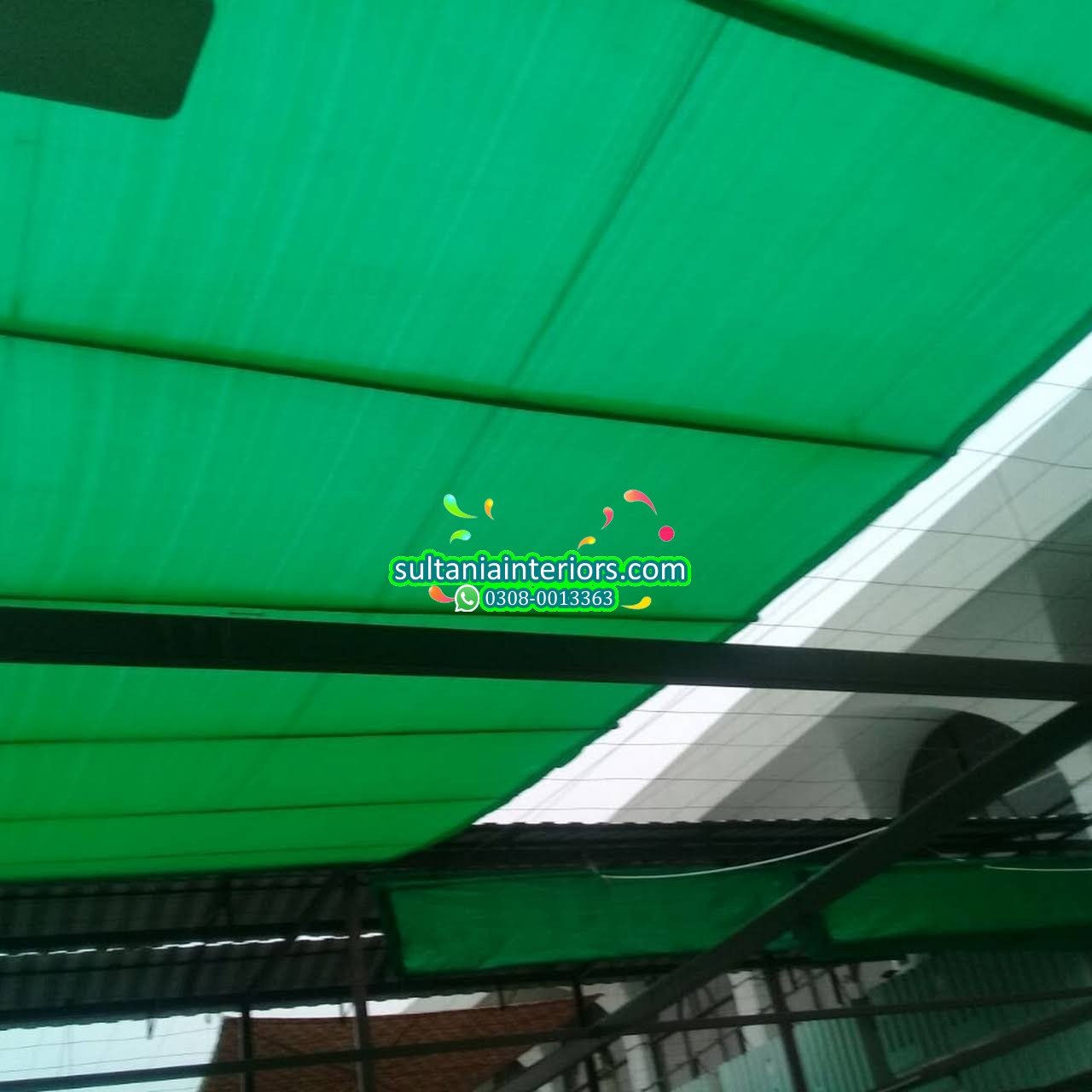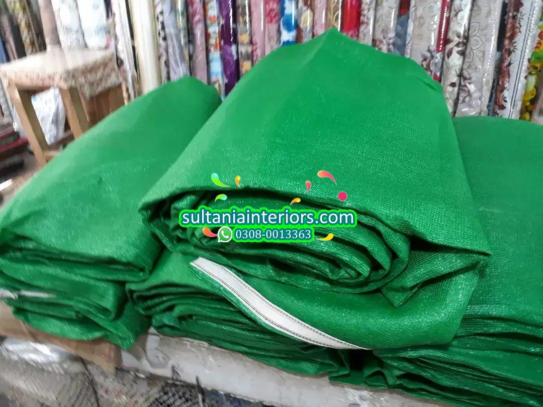 Sultania Interiors offers tough, reliable green tarpaulins perfect for shade and protection in any setting.